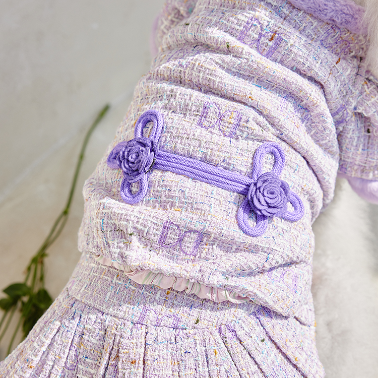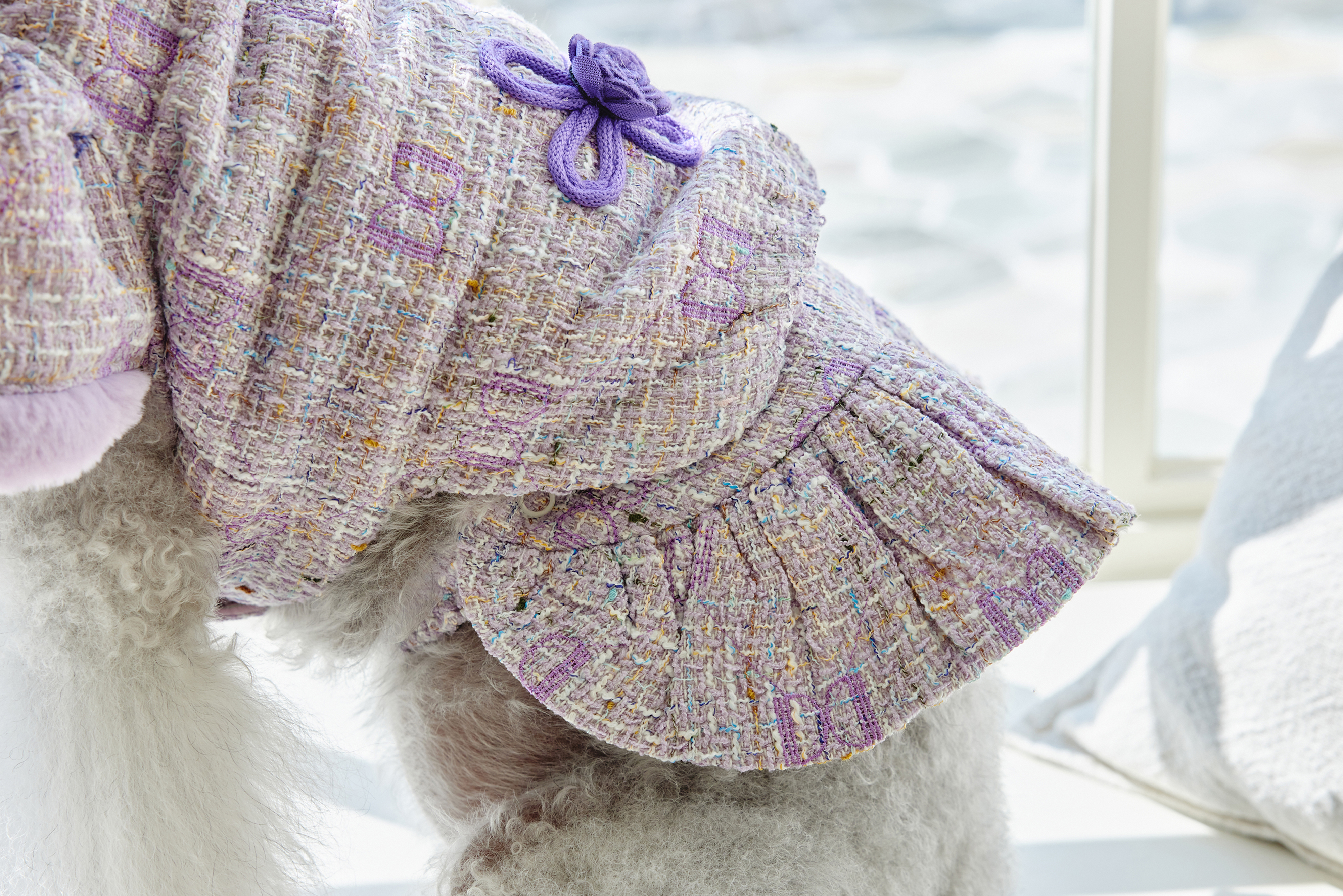 예쁜 트위드 원단에 컬러 라이닝을 넣고 디자인포도그 자수를 박은 자켓에